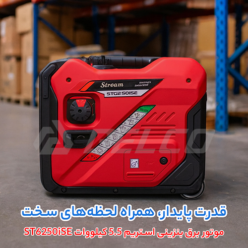موتور برق بنزینی استریم مدل ST6250ISE یکی از پیشرفته ترین و قابل اعتمادترین موتور برق های سایلنت موجود در بازار ایران است. این مدل با بهره گیری از تکنولوژی اینورتری، سیستم سایلنت کم صدا و توان خروجی بالا، برای کاربرانی طراحی شده که نیازمند برق پایدار، کم نوسان و مطمئن هستند. از مصارف خانگی و برق اضطراری گرفته تا استفاده در کارگاه ها، کمپینگ های طولانی مدت و تجهیزات پزشکی، این دستگاه می تواند انتخابی بی رقیب باشد.